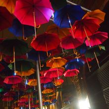 屋内でももちろん飲めますが、外には無数の傘が飾ってあり