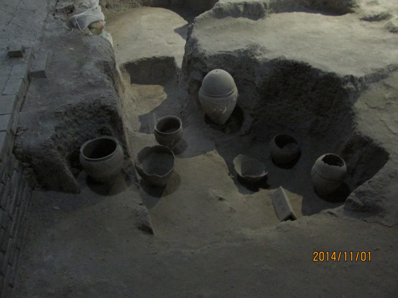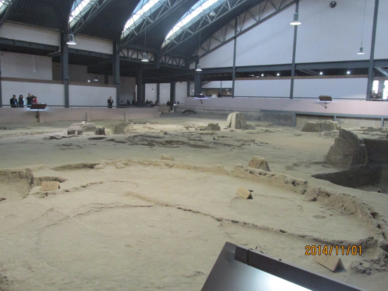 地下鉄一号線にて半坡駅下車、A出口より徒歩10分で半坡遺跡博物館に到達する。地下鉄が開通したので便利になりました。1953年に発見された新石器時代の村落遺跡です。約6千年前と言われています。遺跡は居住区と墓葬区に分かれて展示されています。今まで発掘調査が行われ貴重な文物が発見されています。またこれからも発掘調査が続けられるそうです。
