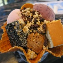 チーズケーキやパイナップルケーキで有名な日出が手掛けるアイスクリーム屋さん。元々は日本人の宮原医師が開業した医院だった場所をそのままリノベーションしてスイーツショップに転身しています。アイスクリームを頼むと、アイスのボリュームに応じてトッピングを選べるのですが、やはり日出の代名詞であるチーズケーキは外せません!