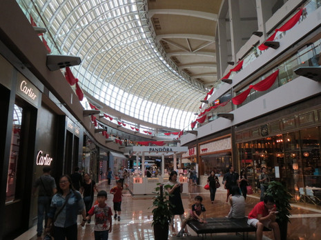 広い敷地内にはルイ・ヴィトンやシャネルなどの有名ブランドから薬局やスーパーまで300店舗以上が入っています。一流レストランやフードコートなどグルメスポットも沢山あります。モール内を流れる運河をゴンドラで遊覧できる「サンパン・ライド」は往復で一人10SGドル。