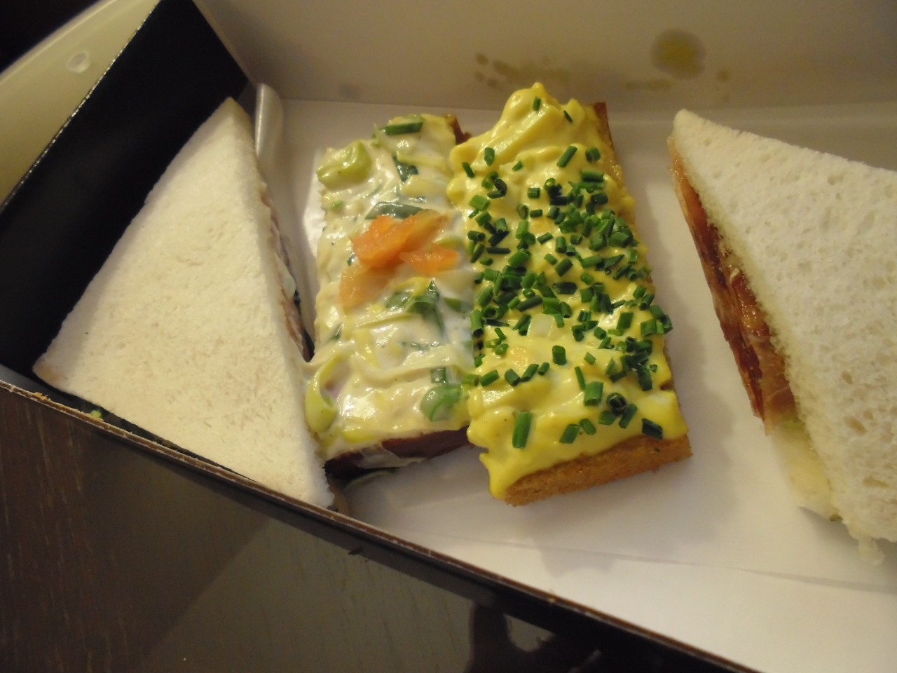 三角のサンドイッチはパンが少し乾き気味でしたが 味はよかったです。