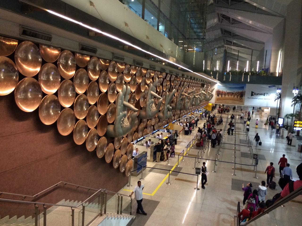 近代的でとてもきれい、広い空港です。トイレも清潔でした。お土産を買うお店も種類が豊富、フードコートやカフェも種類が多く、インドらしい食べ物が楽しめるところもあります。空港の外は一変してインドらしい雰囲気になるので、深夜の到着の場合は少し不安になるかもしれません。
