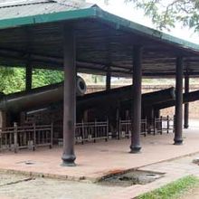 フラッグタワーから王宮の午門に向かう途中に見られる簡潔な屋根の下にある建物はグエン王朝の19世紀初に建造された青銅製の大砲です。春夏秋冬の四季を表す4門と火水木金土の五行を表す5門の合計9門の大砲は王宮を守護する象徴とされています。