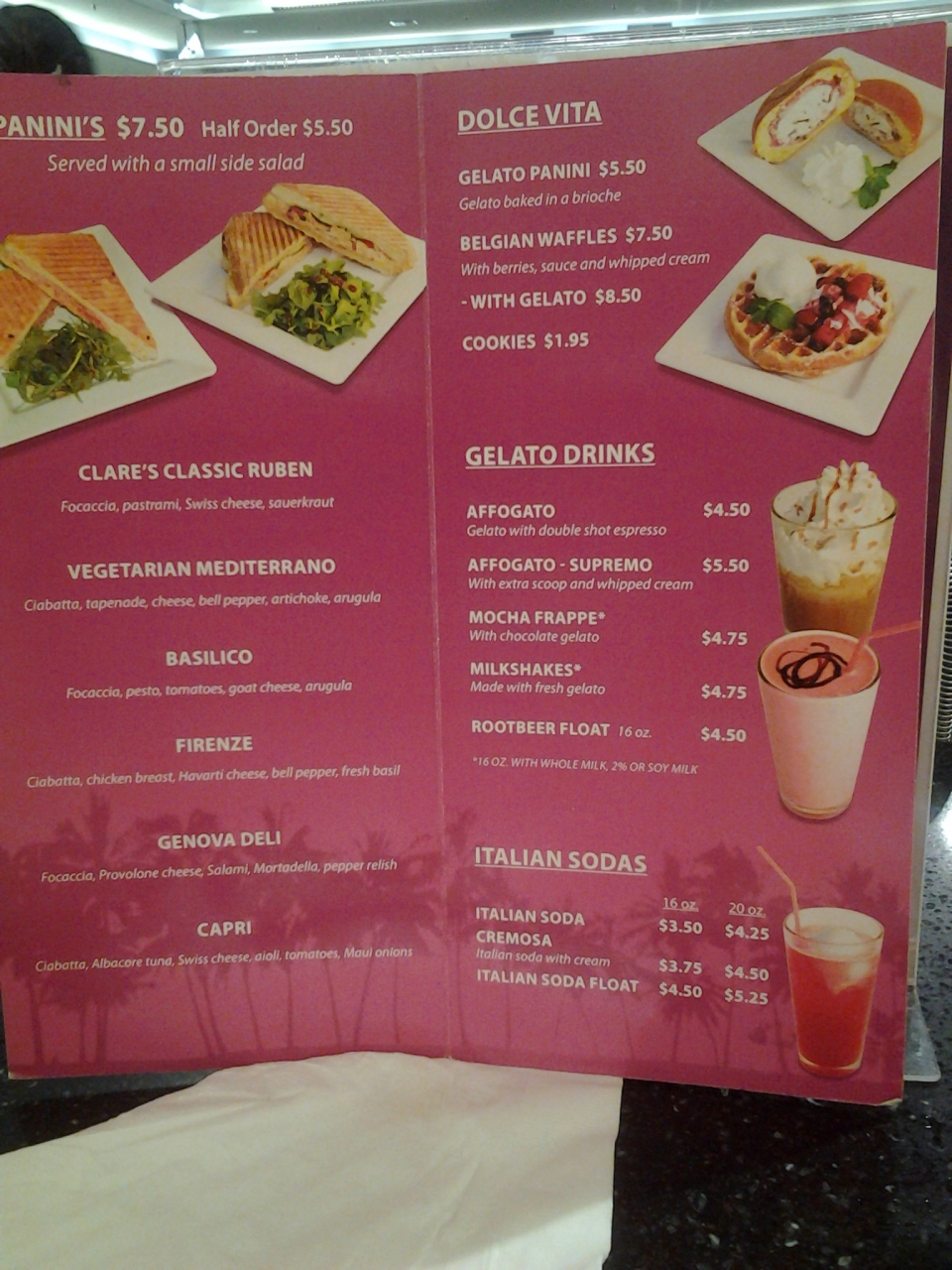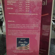 ダイヤモンドヘッド観光の帰りにトロリーでカハラモールへ移動して遅いお昼食べました。何か美味しそうなのないかと探してたらフードコーナの広場ど真中にお店発見。アイスクリーム食べてるお客さんいたのでデザート系の店みたい。近くでメニュー見たら写真付メニューでホットサンド、ベルギーワッフルなどあったのでチラチラ覗いていたら店員の方がこちらへ来られたので、まあ、ここでいいかなと思いホットサンド、と適当に1品+飲み物注文しました。ホットサンドは想像つくけど、もう1品が気になりみてたらパン生地焼いてるので、あったかい食べ物なんだと思ってたら中身がアイスで美味しい。。