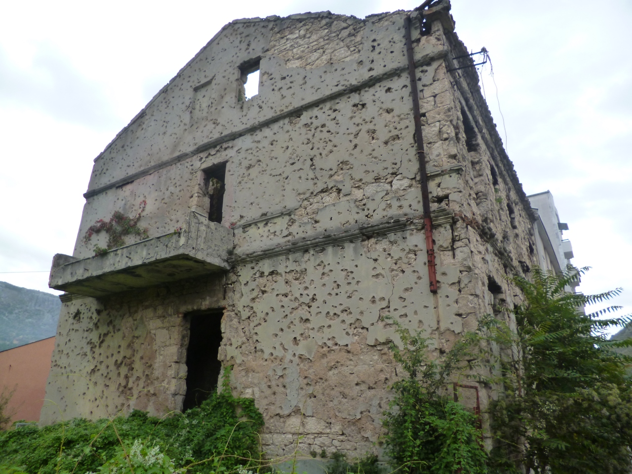 橋の周辺はお土産屋やレストランが並んでいて、いかにも平和な観光地といった印象ですが、旧市街の川向こうには内戦によって廃墟と化した建物が残っており、戦争の悲惨さを感じます。Bulevar通りをはさんで、イスラム教徒地区とキリスト教徒地区に分かれた町は雰囲気が異なり、少しだけですが、民族問題の難しさを垣間見た気がしました。