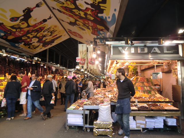 ランブラス通りの左に市場があります。魚・オリーブオイル・キノコ・チーズ・生ハム・・・地元の人も使用しているであろう市場でなんでもありです。夕食にいろいろなものを買ってもいいですね。雰囲気は築地やアメ横のようです。フランスで有名なバター、エシレが以前はイングレスデパートにあったのですが、こちらが取扱がなくなってしまいました。しかし、この市場のお肉屋さんで発見しました。日本の5分の1くらいのお値段でした。数量は大変少ないので、お求めの方はお早めに!