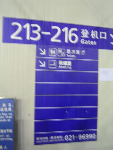 あと、喫煙者にとって大事な大事な喫煙所は、乗継から上がって出たところの左側213-216ゲート近くの1Fにあります。ここへ行くには、下りはエスカレータがあるのですが、昇ってくるのは階段のみ。。後、喫煙所自体が大変狭いうえに換気が全く機能せず。すんごい煙の中でタバコを吸うことになります。ライターは喫煙所の中に設置されています。