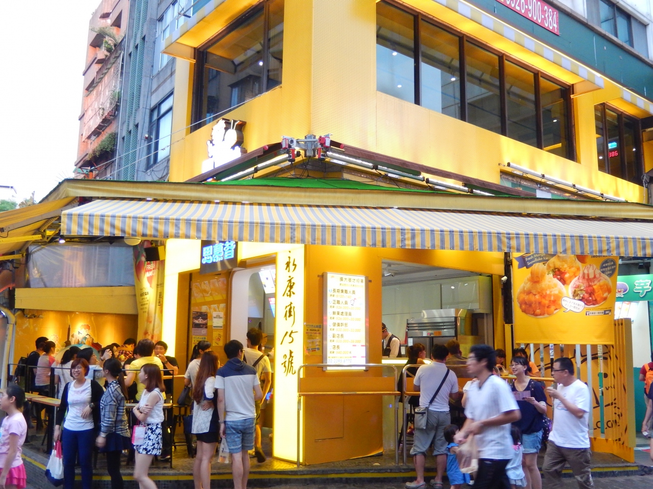 場所がいいこともあって、マンゴーカキ氷店が多い永康街のなかでもいつも一番賑わっています。盛況なので2号店もオープンしています。マンゴーの季節は3月から10月の間で、それ以外の時期は冷凍もの。やっぱり味は少し落ちます。11月から2月はイチゴがおすすめ。「手工鮮奶酪総合草苺雪花氷」は上にパンナコッタがのっていて、こちらの風味も楽しめます。