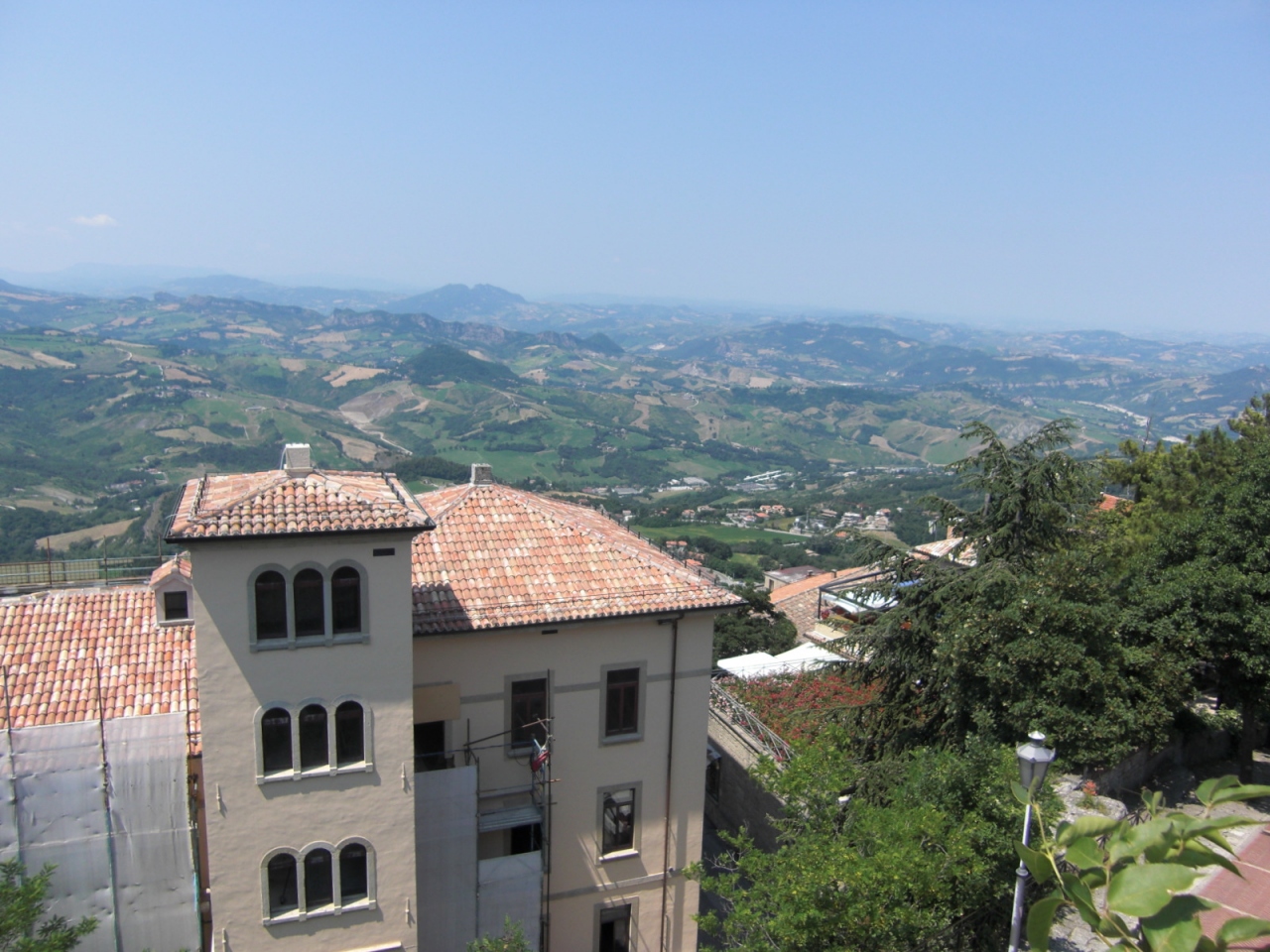 坂の上にある小さな国サンマリノはバス停から山頂までお店がびっしり軒を並べショッピングもとても楽しく上がって行く間の景色も抜群に綺麗な可愛い国でした。