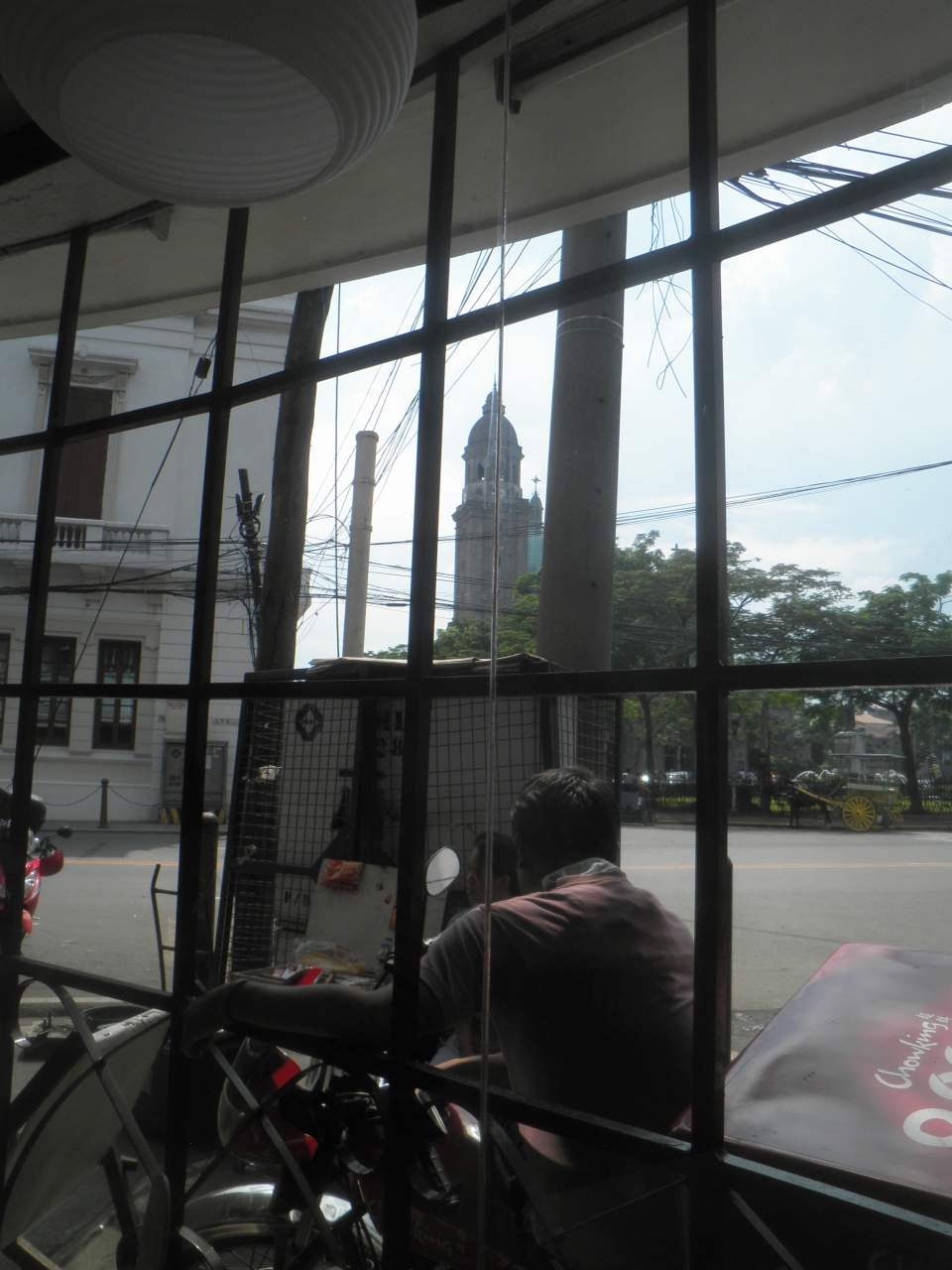 マニラに10回ぐらい行ったことがあるけど、今回初めてイントラムロス内を観光しました。 マラテからだと、海岸のほうから大回りしなければならないそうで、メータータクシーで100ペソかかりました。 エルミタやマラテなどとは違って重厚な石造りの建物が多くてヨーロッパ風です。 マニラ大聖堂のあたりまで行くと、ファーストフード店があります。