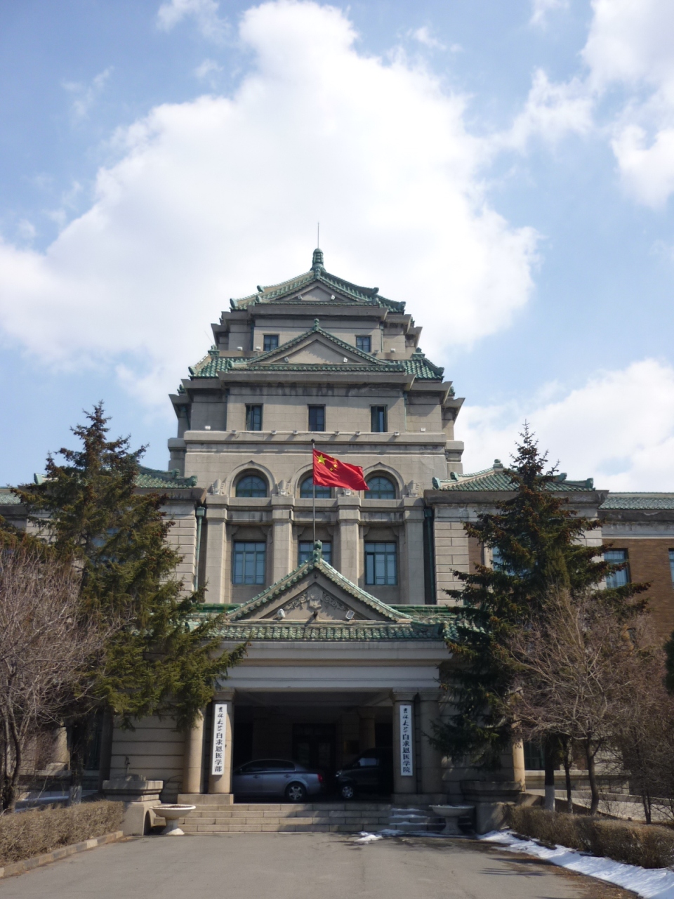 長春文化広場から新民大街を南に下ったところに司法部という、日本でいう法務省に該当する省庁が置かれていた建物が、吉林大学医科大学として今なお現役で残っています。文化広場から新民大街に入りすぐのバス停から213路・13路のバスで一ないし二駅目で下車、向かいに見える瓦の帽子を頭に載せたような建物がそれです。