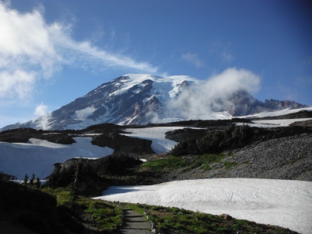 シアトルからアクセスしやすいマウントレーニア国立公園の絶景ポイントで、3時間かかる山頂付近へのトレッキングに参加しました。天気が良くて、セントへレンズ火山やオレゴン州のマウント・フッドを見ることができました。真夏でも残雪や氷河が多く、フリースと冬用のシューズがあると重宝すると感じました。