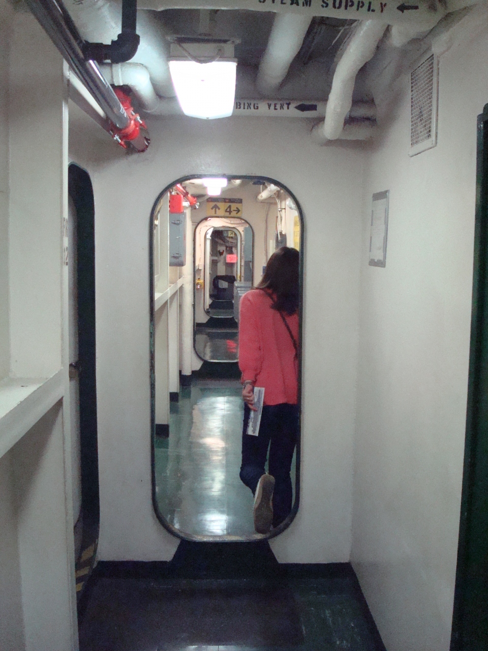 天井は低いし、各部屋の入り口は潜水艦特有の楕円形の入り口になってるため、頭を下げつつ膝を高く上げて入らないといけません。で、その楕円形の入り口が何個も何個もあるので、ほんと疲れます。地上への出口も分からず、ひたすら進む・・・。方向感覚もなくなり、ほんと迷路でした。すごく疲れました。