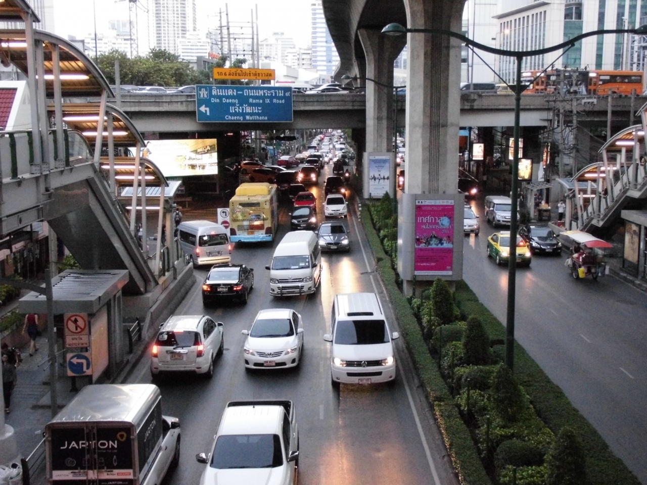 スクンビット通りが下に走っており、高速道路の出入り口も近く道路は渋滞が頻繁にはるせいしている場所です。