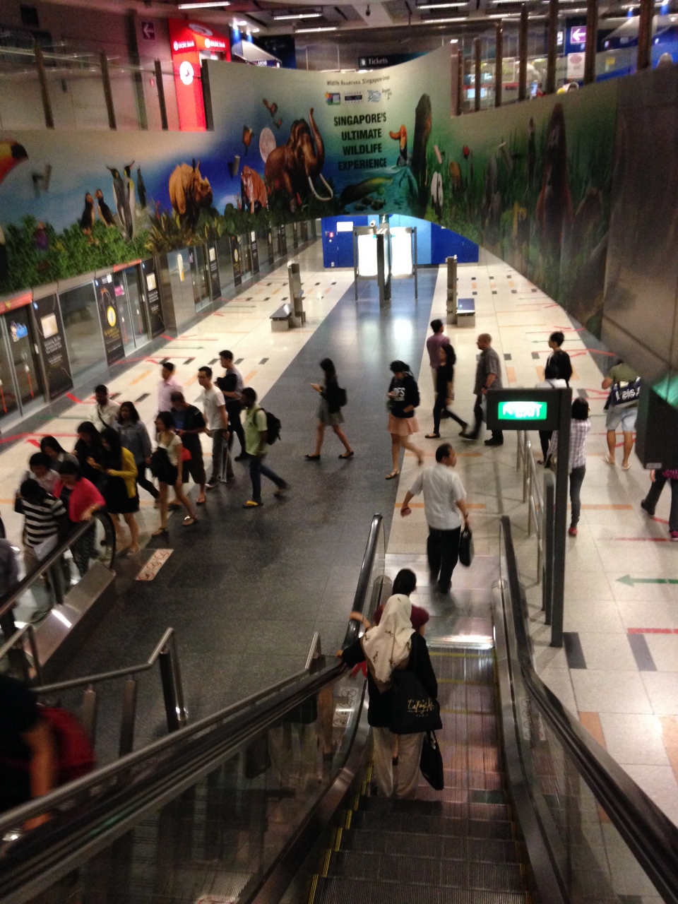 セントーサ島から市街地へ、そして市内をグルグル廻るのに使いました。路線ごとに色分けされてて、しかも3分おきくらい列車が来るので実に快適に使えます。コストも安いと思いますから、鉄道大国に住む日本人なら便利に感じると思います。