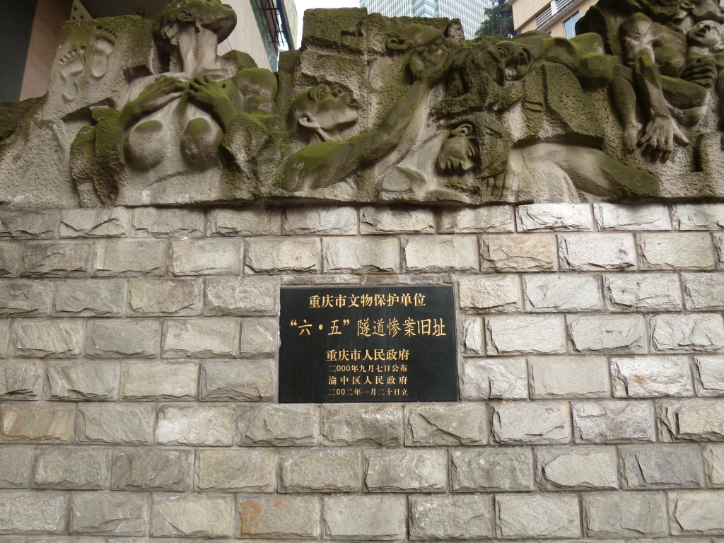 日中戦争の最中、中華民国の臨時首都が置かれていた重慶に対して、1938年から1941年にかけて日本軍による無差別爆撃が断続的に行われました。一万人規模の死者を出すことになるわけですが、その中でも1941年の6月5日に行われた空襲では5000程の収容人数のトンネル(防空壕)に10000人近い中国人が避難したことから酸欠が起こり、実に900人以上が命を落としたと言われます。この惨劇の記憶をとどめる場所が「大隧道惨案旧跡」です。