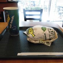具材、パン、トッピング、ソースを多くの種類から自分好みにチョイスできるので結構気に入りました。ドリンクはMサイズでしたが、大きなカップで自分で好きな量を注ぐ形式です。ハーフサイズにしましたが結構な量がありましたので、フルサイズにしなくて正解でした。店員さんも感じが良く、トッピング時に色々と気を使っていただけて助かりました。