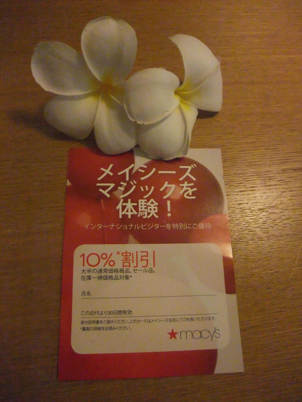 10時オープンに合わせて赤いシャトルバスで行った。時間が早いせいか人は少なかった。メイシーズの割引券をセンターのインフォメーションでもらった。たくさん積み上げておいてあった。これはマストだ。昼食はフードコートで食べたが、以前に比べるとずいぶんと清潔にきれいになっていた。
