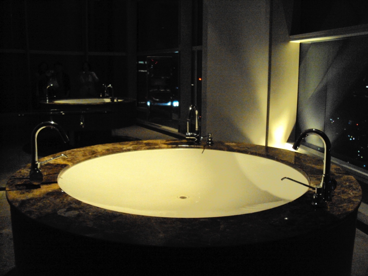 壁とドアが鏡張りで窓から街が見渡せて 夜景とても素敵です。