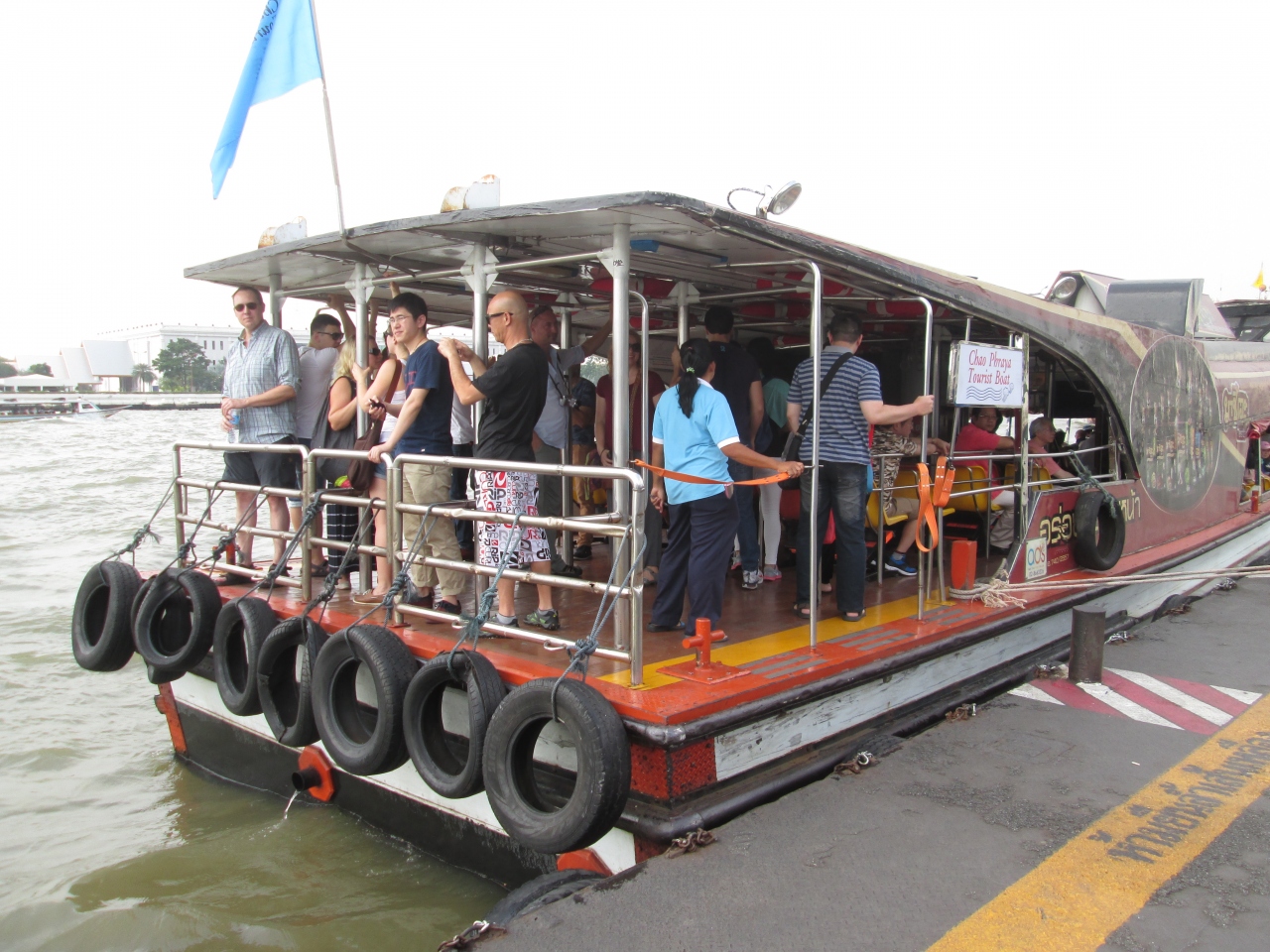 サートン(中央桟橋)からワットアルンがあるターティアン船着き場まで乗車しました。主要観光地に停船する赤いChao Phraya Tourist Boatを利用すると20分程度の所要時間であった。1回乗車券は40バーツです。