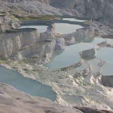 やはり涸れた石灰棚が多く少しがっかりでしたが、温泉に入れないエリアの方に水が張った棚がありそこは綺麗でした。