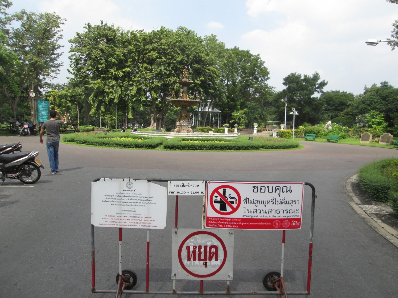 チャルン・クルン通りに面した緑豊かな大きい公園です。中には噴水もあります。ワットポー、ワットプラケオの近くにあるので歩き疲れたらここで休憩できます。周囲にはタイの国防省、外務省・内務省、防衛局などがあります。