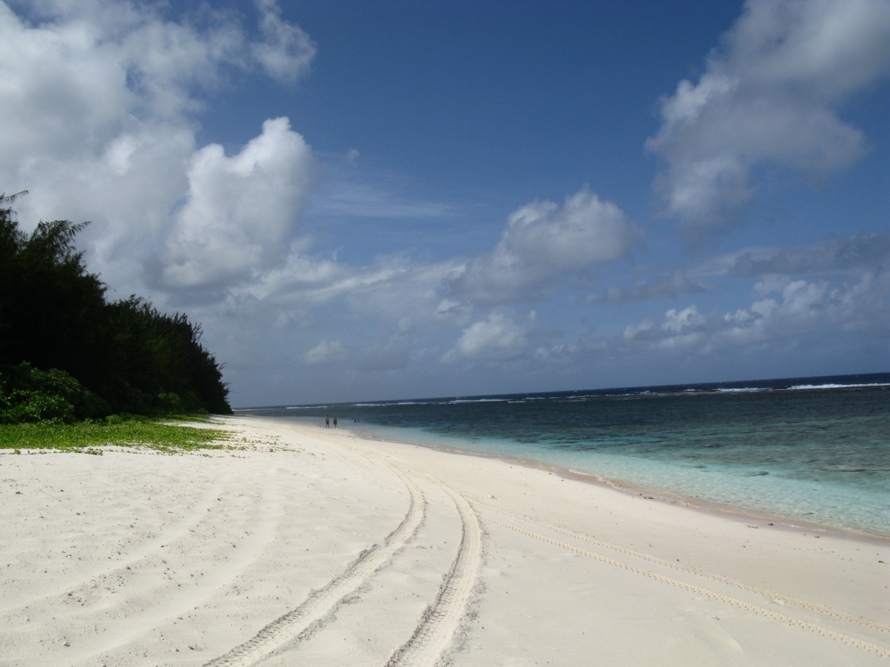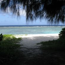 でこぼこ道を抜けて、ジャングルのような所を抜けると、本当にきれいな砂浜と海が広がっています。