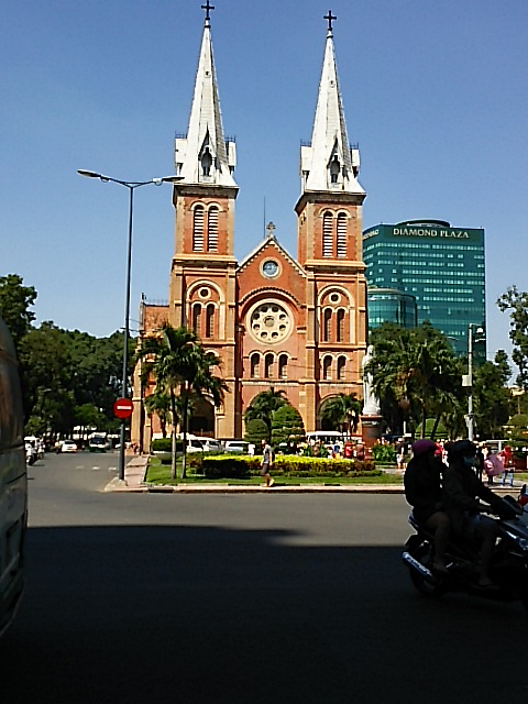 ドンコイ通りの一番北、広場のようなところにドーンと建ってます。