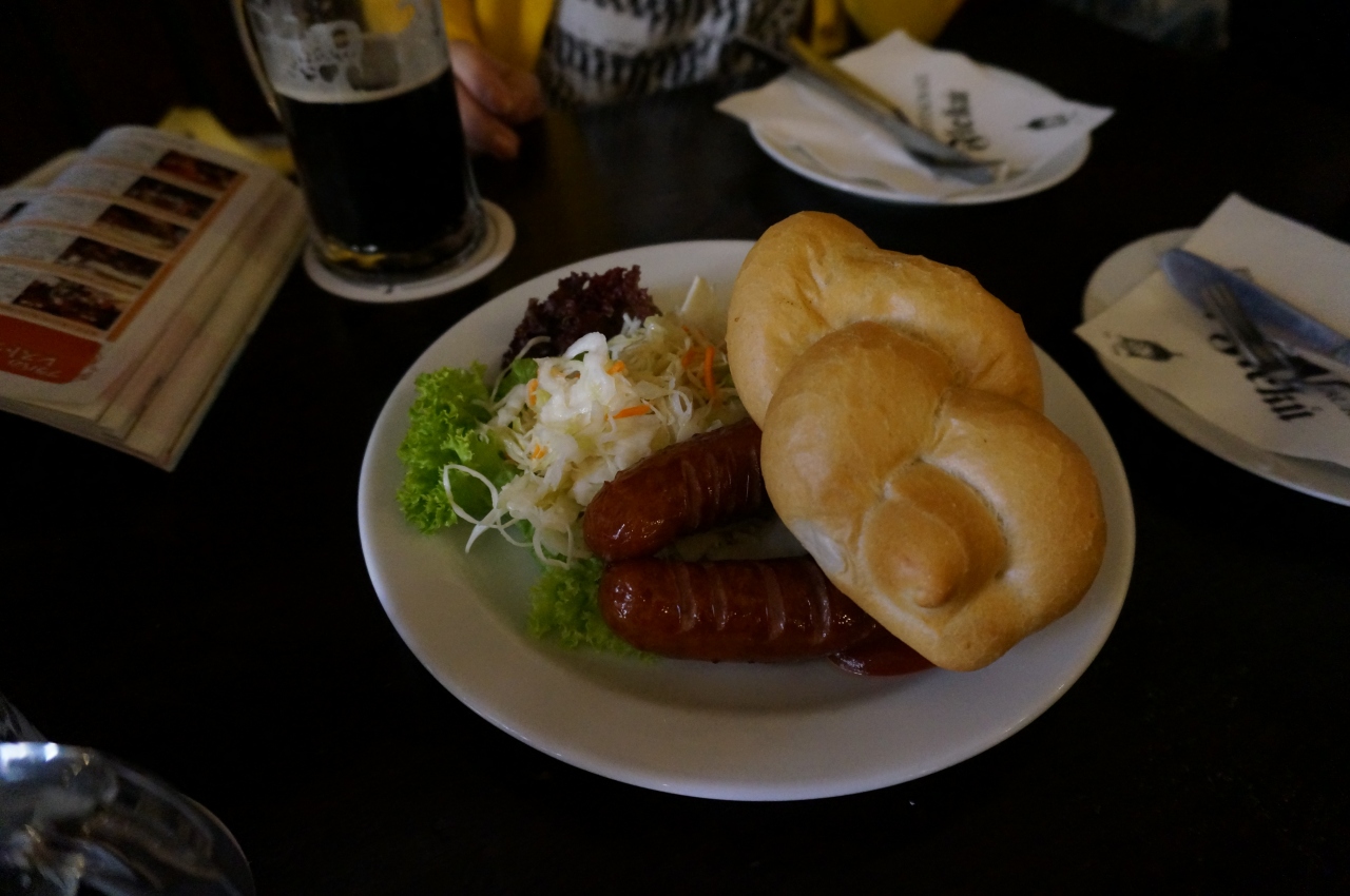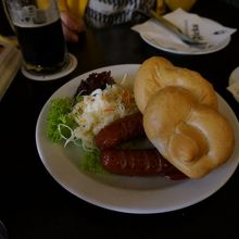 食前酒を勧められましたが、おいしそうではなかったので断りビールとソーセージを注文。