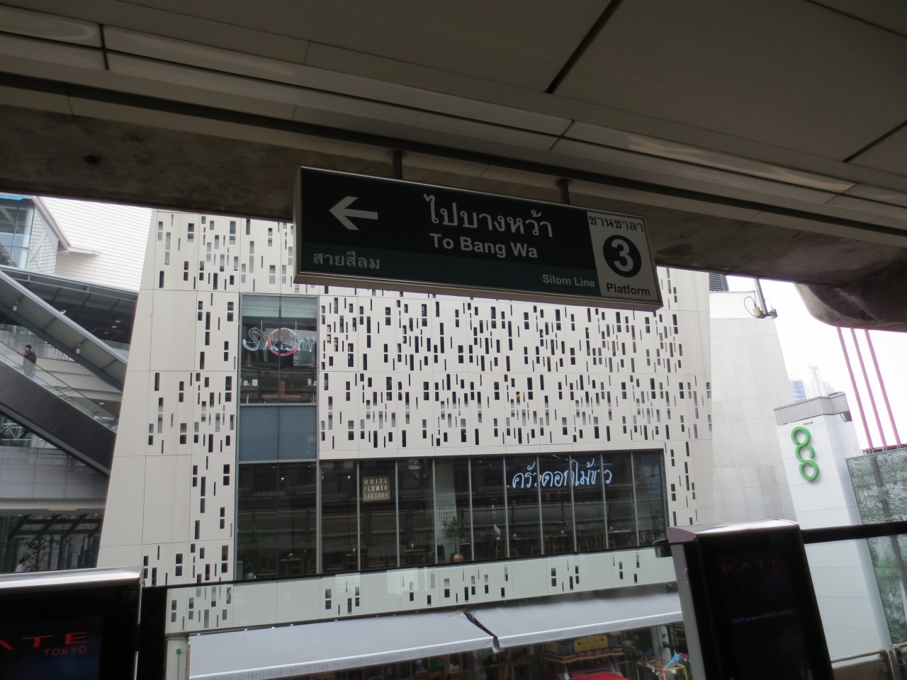 スクンビット線で移動したあとにシーロム線への乗り換え駅でした。ナショナルスタジアム駅行きが1駅で終わりなので、反対線ウォンウィアンヤン駅行きに乗る人がダントツに多いです。こちらの路線はチャオプラヤー川に向かうので中心部よりは人ごみにはなりません。