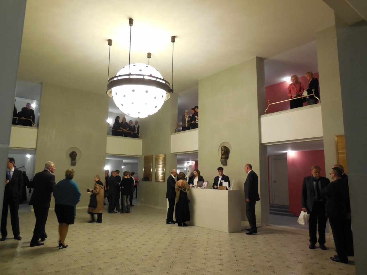 ギリシャ神殿風の建物で、内部は他のオペラ座と比べるとシンプルです。