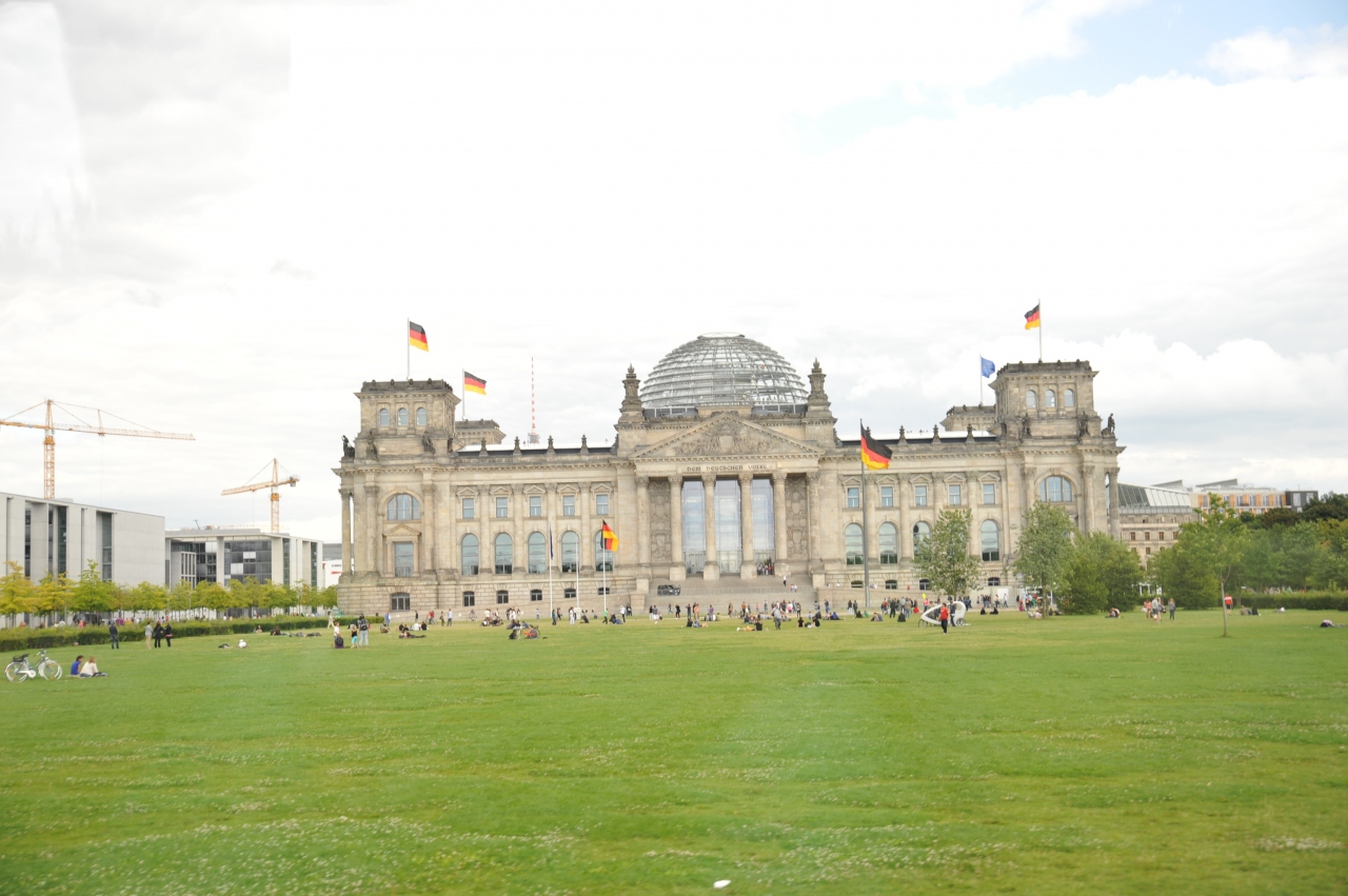 国会議事堂前は広大な芝生の広場になっており、誰でも自由に行き来ができますし、ガラス張りのドームで象徴されるように、議会や政治がひじょうにオープンなものを目指しているということが感じられます。近くには首相府もありますが、こちらはとても近代的な建物でした。