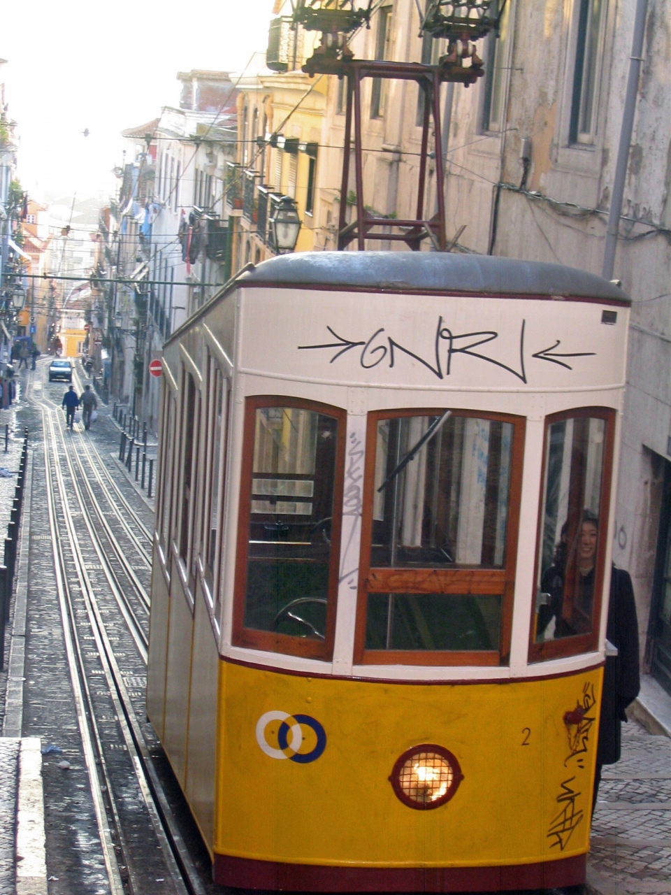 ケーブルカーというと日本では、行楽地の山へ登るものを想像しますが、7つの丘があるリスボンでは、丘の上と下を結ぶ公共交通施設です。建物の壁ぎりぎりを走る一両編成の車体には落書きもあったりしますが、リスボンの石畳ととてもよく調和する乗り物だと思いました。