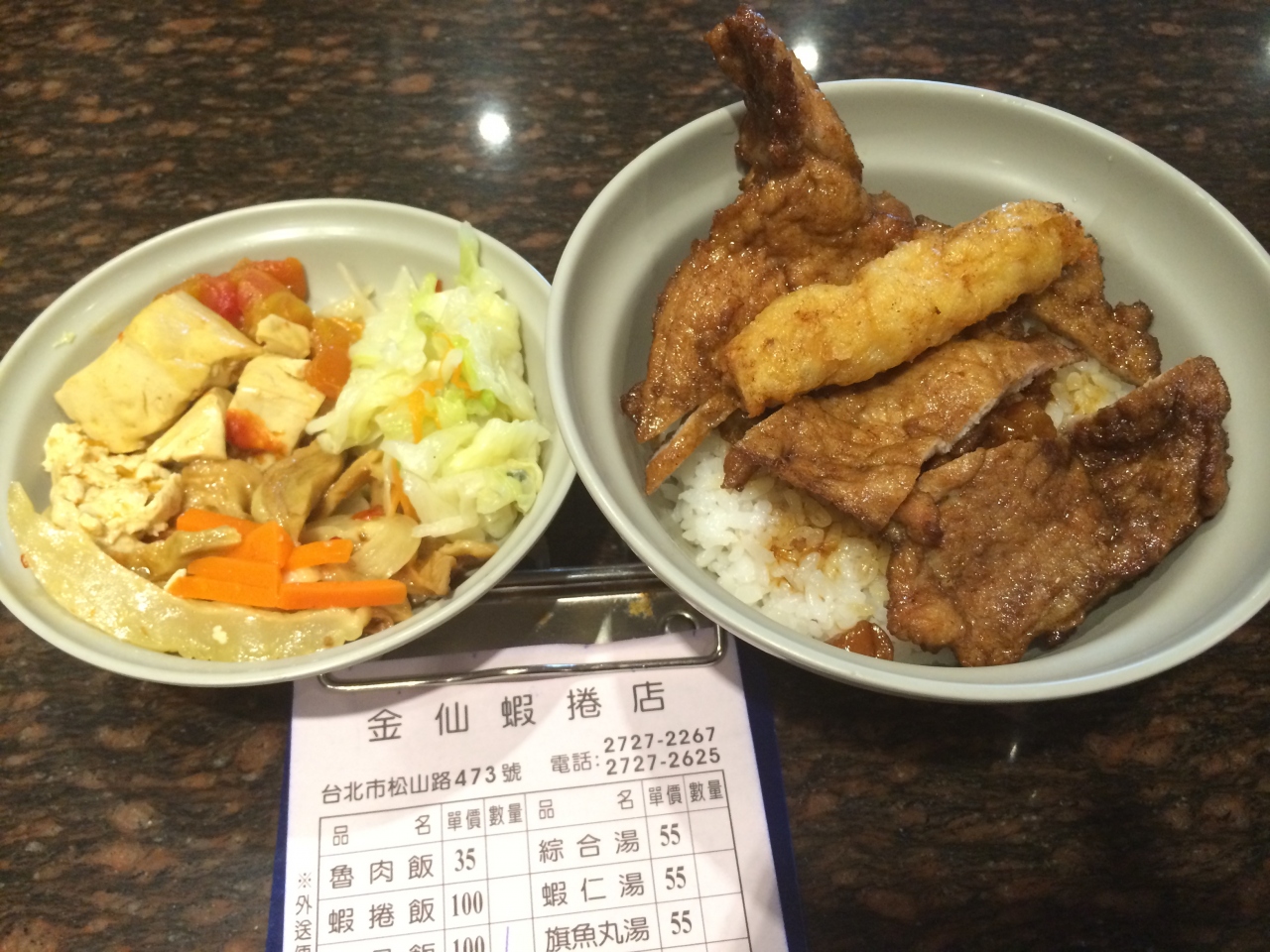 中には一本の蝦捲(エビのすり身を油で揚げたもの)と魯肉飯もあります、排骨飯を頼むと蝦捲と魯肉飯両方食べれる、本当に美味しいです。