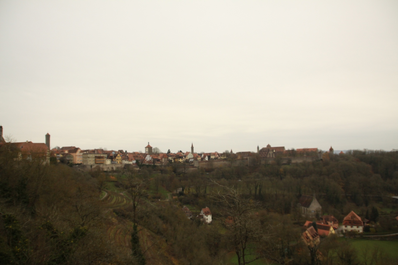 11月下旬に訪れたのですが、賑やかな中世の街並みの散策からこの公園にたどり着くと、自然の佇まいに晩秋の寂寥感を感じさせるものがあり、しばらくの間歩を止めてしまいました。ここからタウバー川を臨む見晴らしも絶景ながら少し寂しい雰囲気でした。