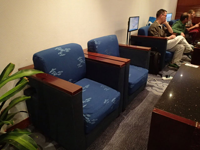 ラウンジのソファの一部は、日本の常識だったら「捨てる」ほどガタがきている席もいくつかありました。