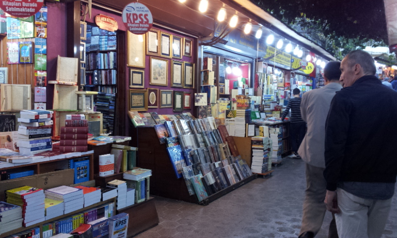 地図では少し離れているように見えましたが、実際は、バザールにほぼ隣接しています。古本街という名前の通り、古本がびっしり陳列されていました。