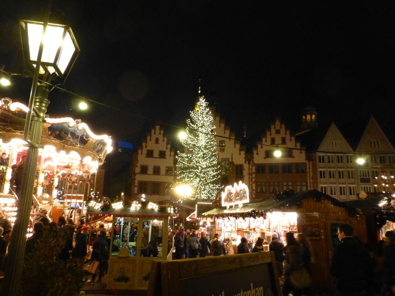 レーマー広場を中心に多くの屋台が出ています。ホットワインは3ユーロで、マグカップのデポジットは2.5ユーロです。ただ、お土産屋さんにマグカップ3ユーロで売っているので、お土産にしたいかたはそちらでお求めになった方がいいです。ソーセージも大体3ユーロ程度です。