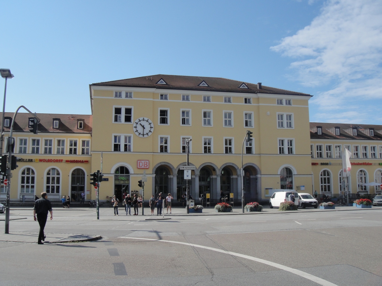 ミュンヘン中央駅から電車(ALEX)利用して1時間30分弱。駅構内にはキオスク、ベーカリーなどのお店もいくつか入っています。旧市街の大聖堂までは歩くと15分ほどかかります。ドナウ川の対岸シュタットアムホーフも徒歩圏内で、観光には便利です。