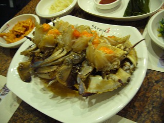 カンジャンケジャン(ワタリガニのしょうゆ漬け)で有名な店。客の半分くらいが日本人だと思われます。メニューは写真付きで、日本語もあります。カンジャンケジャンは3匹で83,000ウオンでした。このほか、アンコウやタコなどシーフード系の炒め物や鍋があります。ケジャン以外はボリューム満点なので頼み過ぎないように注意しましょう。
