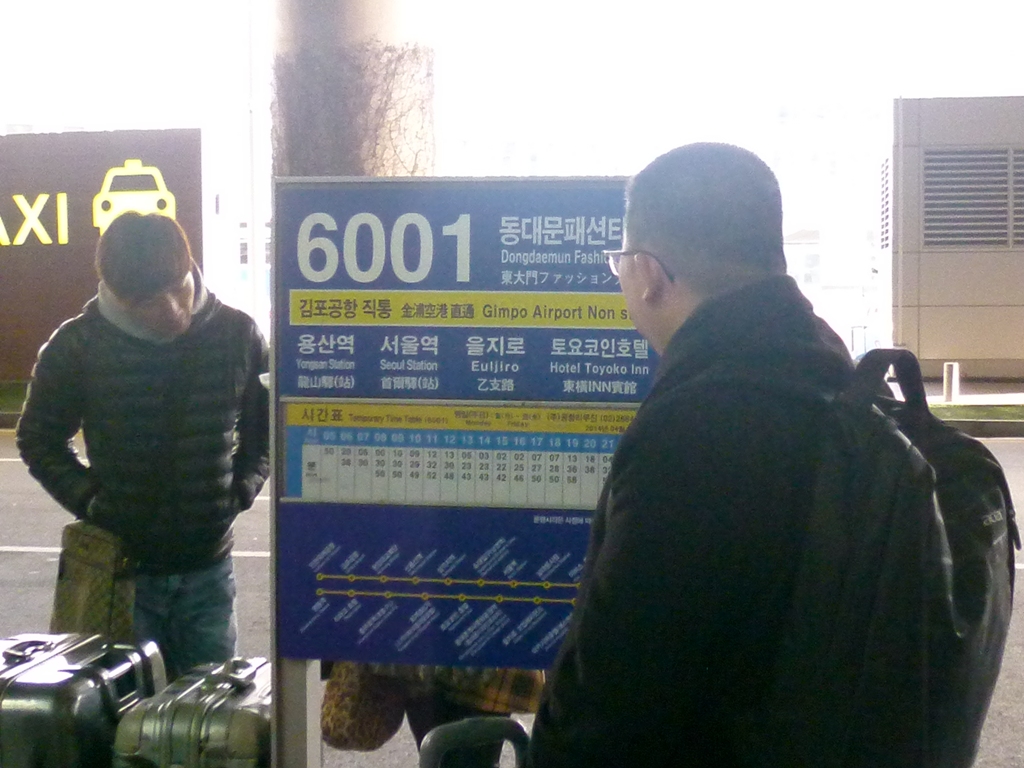 仁川空港からソウル中心部への移動は、列車、バスなどありますが、今回はバスを利用しました。列車も良いのですが、駅の改札口までちょっと距離があること。また目的のホテル付近の駅まで乗継がかかる、とのことからです。バスはちょっと時間がかかり、ちょっと高額ですがゆったりと外の景色を見ながら快適です。ご利用下さい。