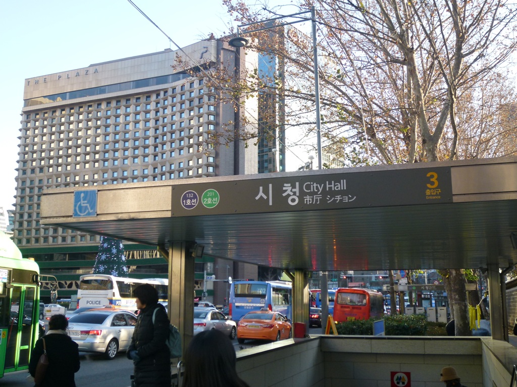 地下鉄「市庁駅」ですが、一号線と二号線がありますが、いつも利用するのは一号線が多いです。一号線をでるとそこは「徳寿宮」や「市庁」北方向には「景福宮」やその路地にある銅像などの観光地が多く点在します。さぁー、その路地を北方向に向かって「ソウルシティツアーバス」乗場まで歩きます。地下鉄乗車で楽しんでください。