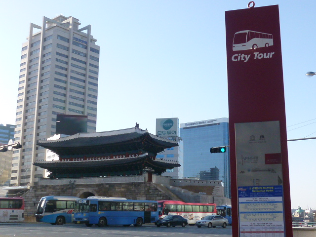 今日は「ソウルシティツアーバス」市内の観光地をぐるーと回ります。ここ「南大門」で下車しました。バスの車窓からちらっと見るよりじっくり周囲を周って見学するのも良いですね。一部焼失されましたが現在は復元されています。近くには南大門市場があり、買物も出来ます。周囲の散歩も良いし、ここから明洞まで歩いてもそう遠くはありません。さぁー、韓国のシンボルの国宝1号の「南大門」です。