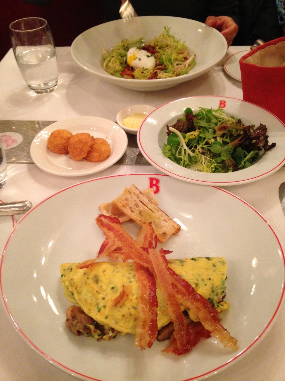 料理はアメリカの雑さがなく、非常に繊細でまるで日本のレストランで出された料理のようです。最後のデザートのムースが非常に甘くおいしかったです。格が高いようで、サラダ、オムレーツ、コーヒーとデザートしか頼んでいなかったのに60ドル強でした。