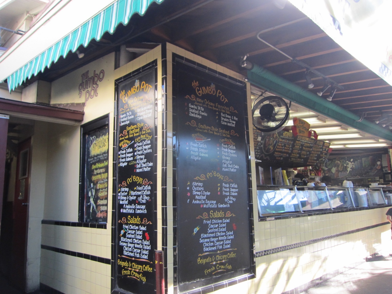 ファーマーズマーケットという名前ですが、マーケットはフルーツ店とナッツ店、チョコがある程度で他は飲食店がごった返しています。いろんな国のフードコートがあるので選ぶのに迷います。調べていったとおりブラジル料理に列ができていました。ごはんが食べたい人は韓国料理を選んでいました。ファラフェルなどもありました。今回はアメリカの南部料理だというガンボポットを選びましたがおいしかったです。本当はザリガニらしいですが、ここではエビでした。