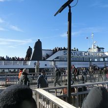 自由の女神がいるリバティーアイランドへ向かう船です。チケットはオンラインで申し込み可能ですが、レシートを窓口に持っていき、チケットと引きかえてもらう必要があります。メールで送付されてくることはありません。シティパスも使えます。船は往路、進行方向右側に女神が見えます。船酔いしやすい方は注意しましょう。
