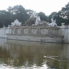 ネプチューンの彫刻があり、ここから先が、坂道、高台となっています。このあたりからはシェーンブルン宮殿と、花の咲く庭園が全体的に見渡せます。