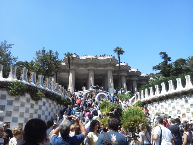 2013年10月からグエル公園も有料化されたようですが、行ったときにはまだ無料でした。今は入場制限されることもあるようですが、当時はそういうこともなかった代わりにものすごく混雑していました(今も混雑はしているのかもしれませんが...)混雑はしていたものの、景色もいいですし、あの独特な世界にはいれるし、行ってよかったです。