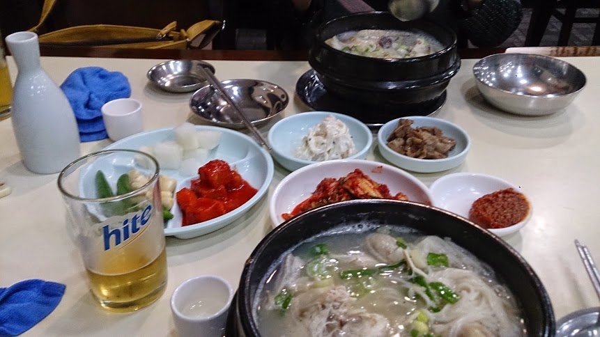 参鶏湯は鶏のスープに旨みがありながらも、くどく無く優しいスープです。鶏もやわらく煮込まれており、ぐつぐつ煮立った状態でテーブルに運ばれてきます。テーブルにお塩が用意されており、好みに応じて入れてくださいと案内されます。日本でも普通に参鶏湯が食べられるようになり、参鶏湯に対する日本人のハードルも高くなってきていますが、その中でも、なかなか美味しい参鶏湯だと思います。また副菜のなかに砂肝を調理したものがあり非常においしかったです。人参酒や食後に甘い伝統茶が提供されますが、こちらは個人の好みがはっきりでるかもしれません。