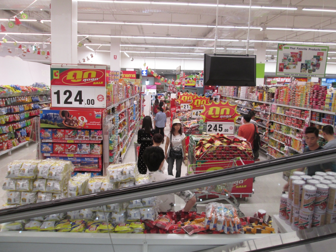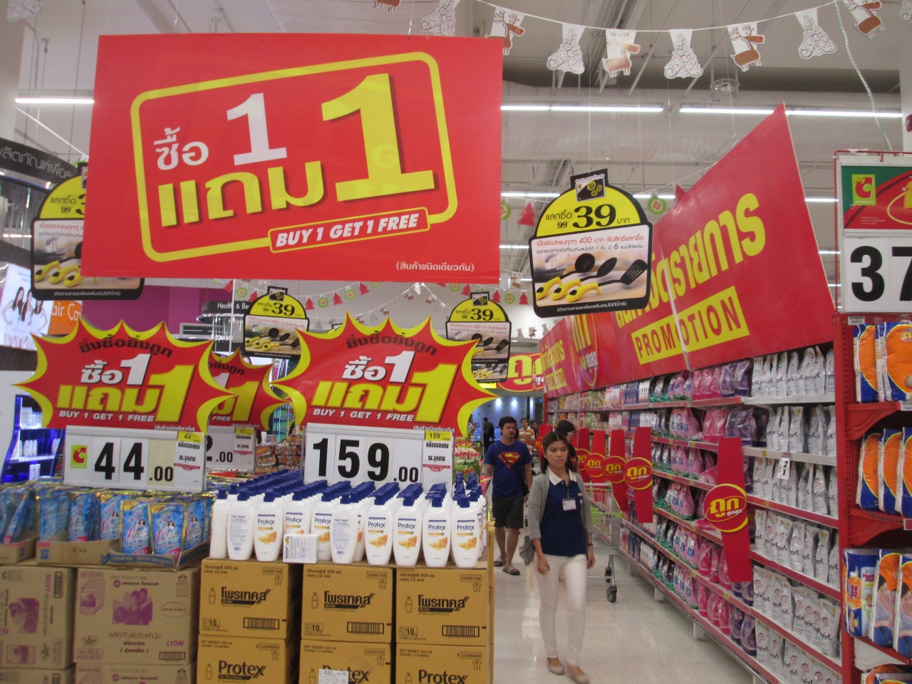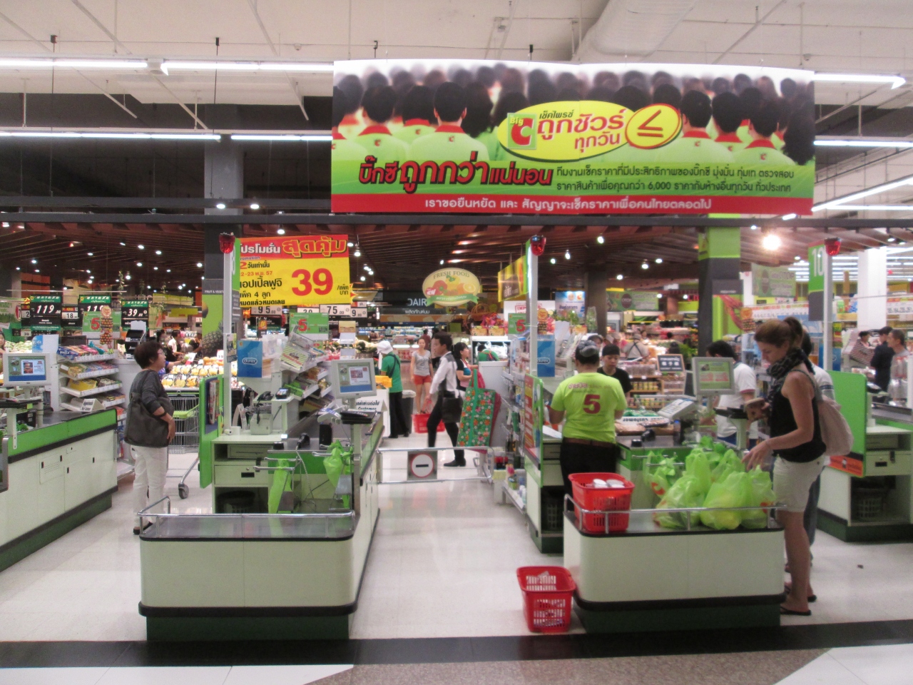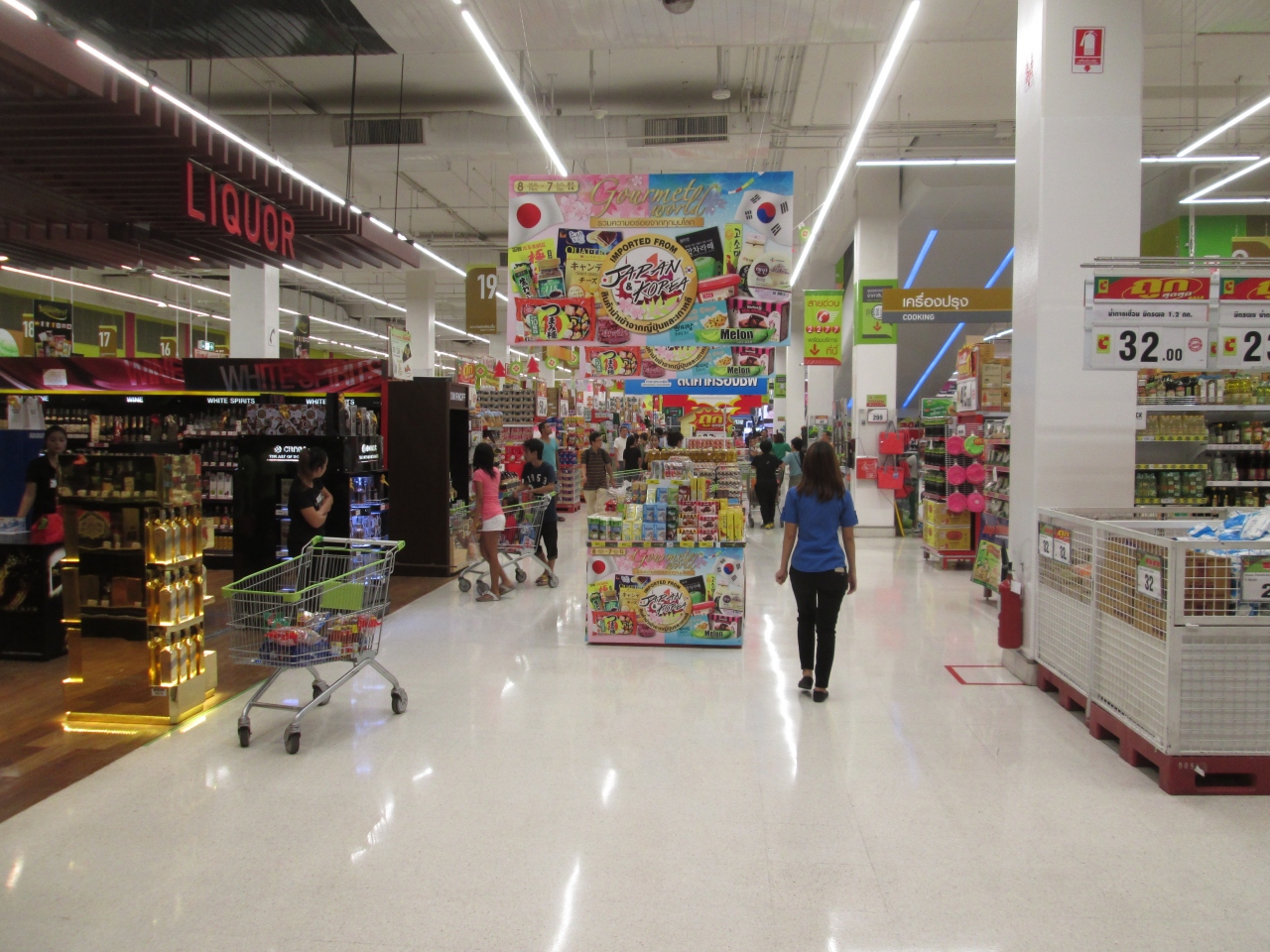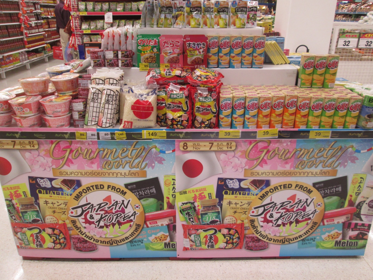 場所柄バンコクのローカルの人だけでなく旅行者の利用が多いです。全ての商品がリーズナブルな価格であるため大きいかごにお土産を買っている光景を見かけます。一方、バンコクでは日韓に対して好意的であることから、日韓フェアを開催していることが多いです。